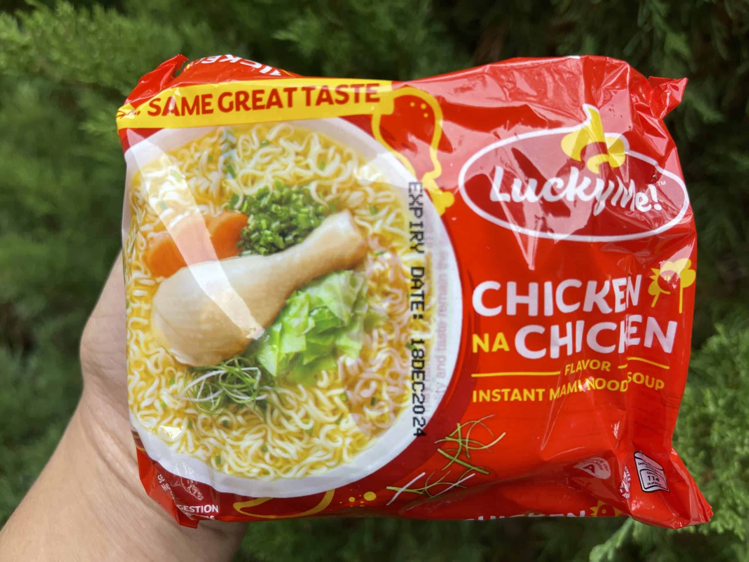 The Lucky Me chicken noodles are packed with rich spices and ingredients.